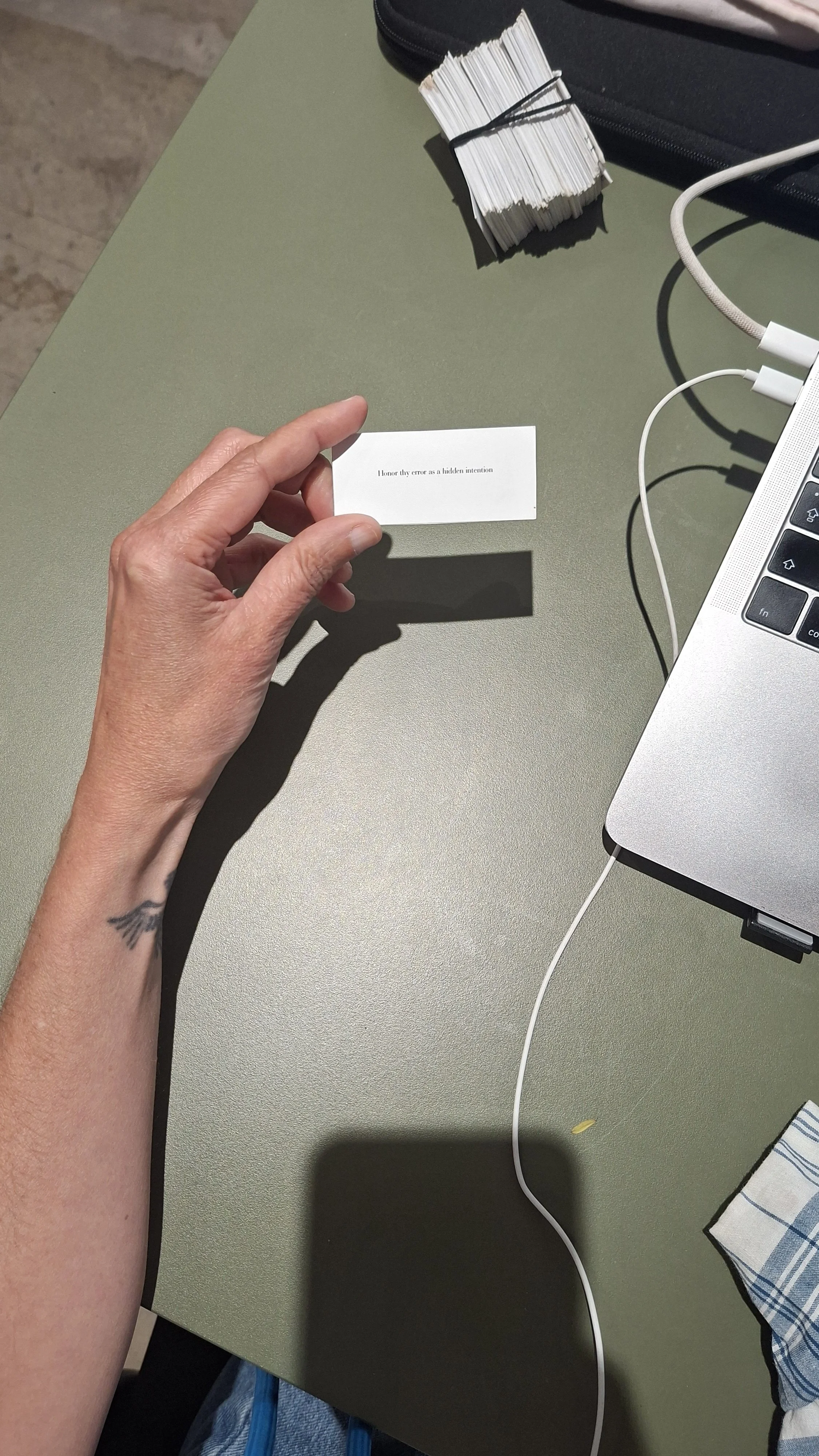 “Honor thy error as a hidden intention” – is a famous, foundational prompt from Oblique Strategies, a 1975 deck of cards created by Brian Eno and Peter Schmidt to break creative blocks. It encourages treating accidental mistakes, glitches, or unexpected, "wrong" outcomes as intentional artistic decisions that reveal a deeper, perhaps subconscious, creative direction.